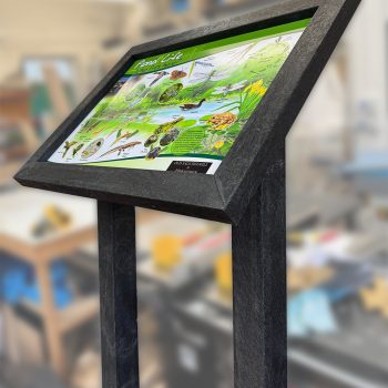 Our recycled plastic lecterns, trail boards and pedestals are constructed in a similar style to our oak range, with removable picture frame for changing over display panels. Lecterns and pedestals are supplied with 18mm EHB (recycled plastic) backing boards, cross beams and anchors. Available in sizes A0, A1, A2 and A3. A1.